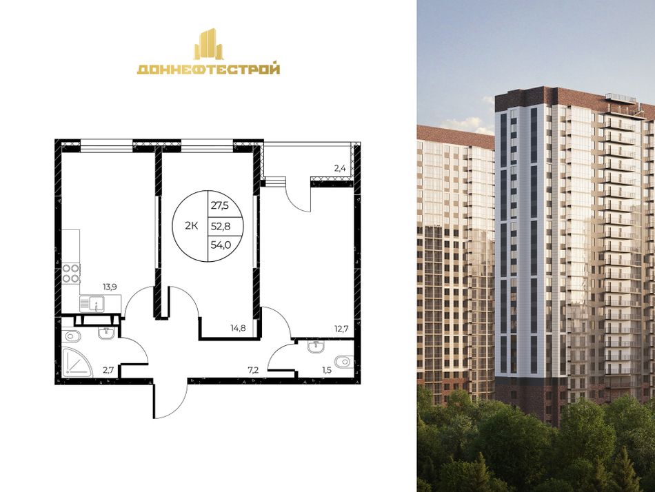 2-комнатная — 54 м² 24/25 эт. в Панорама на Театральном