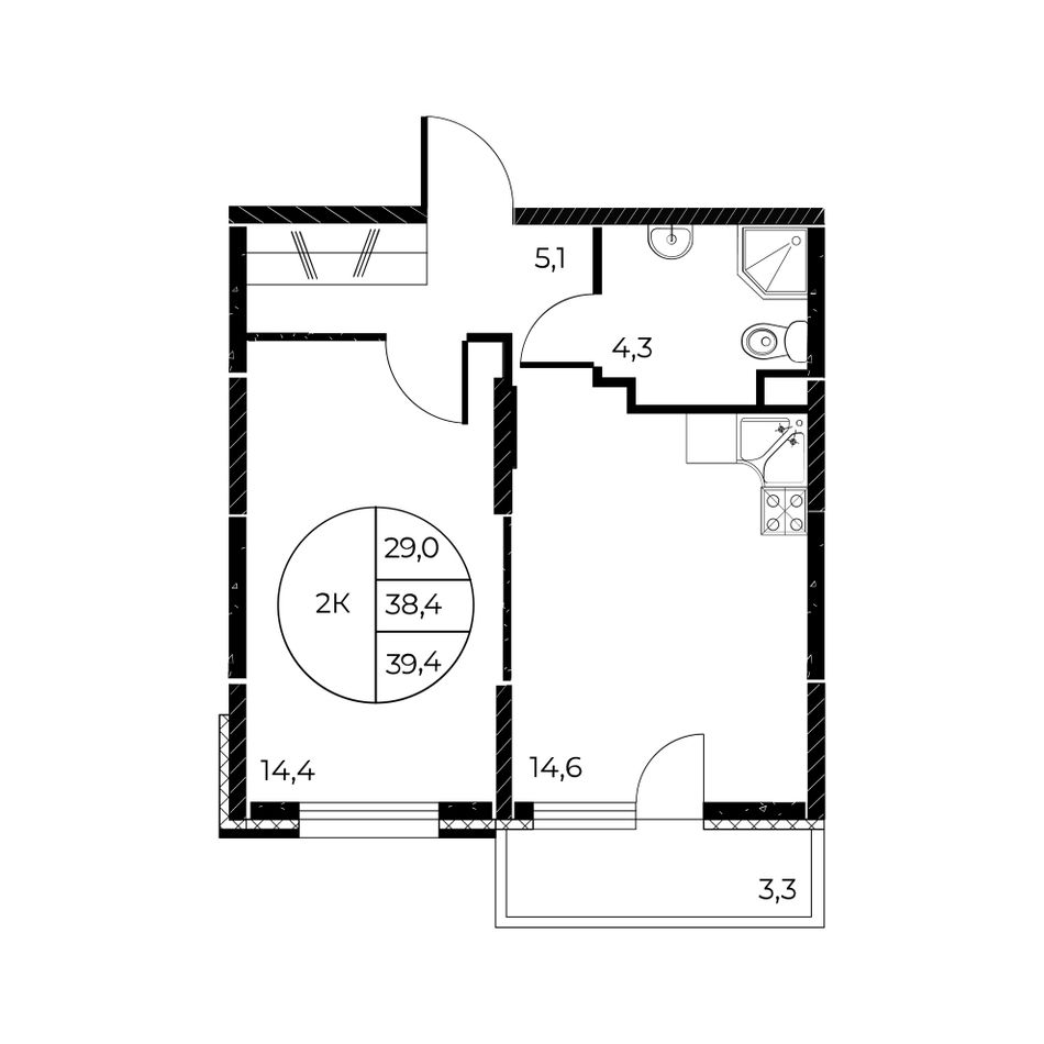 Общая площадь39,4 м²