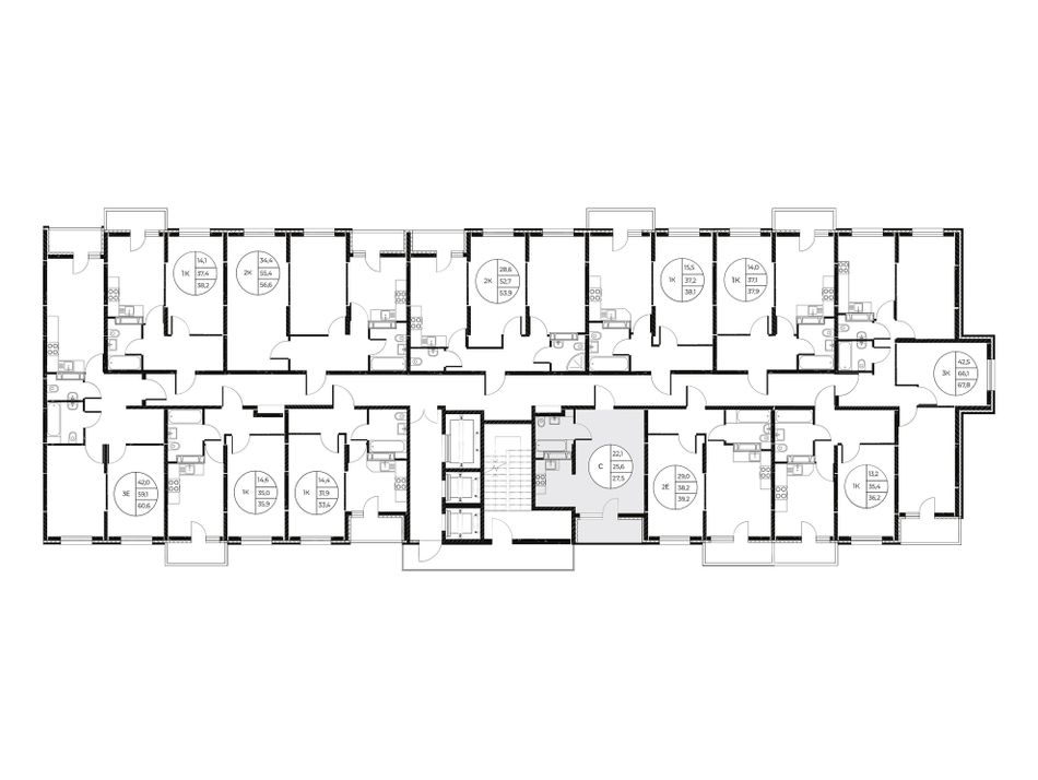 | Студия | 23 - 24 м² | 3,8 - 4,6 млн ₽ |