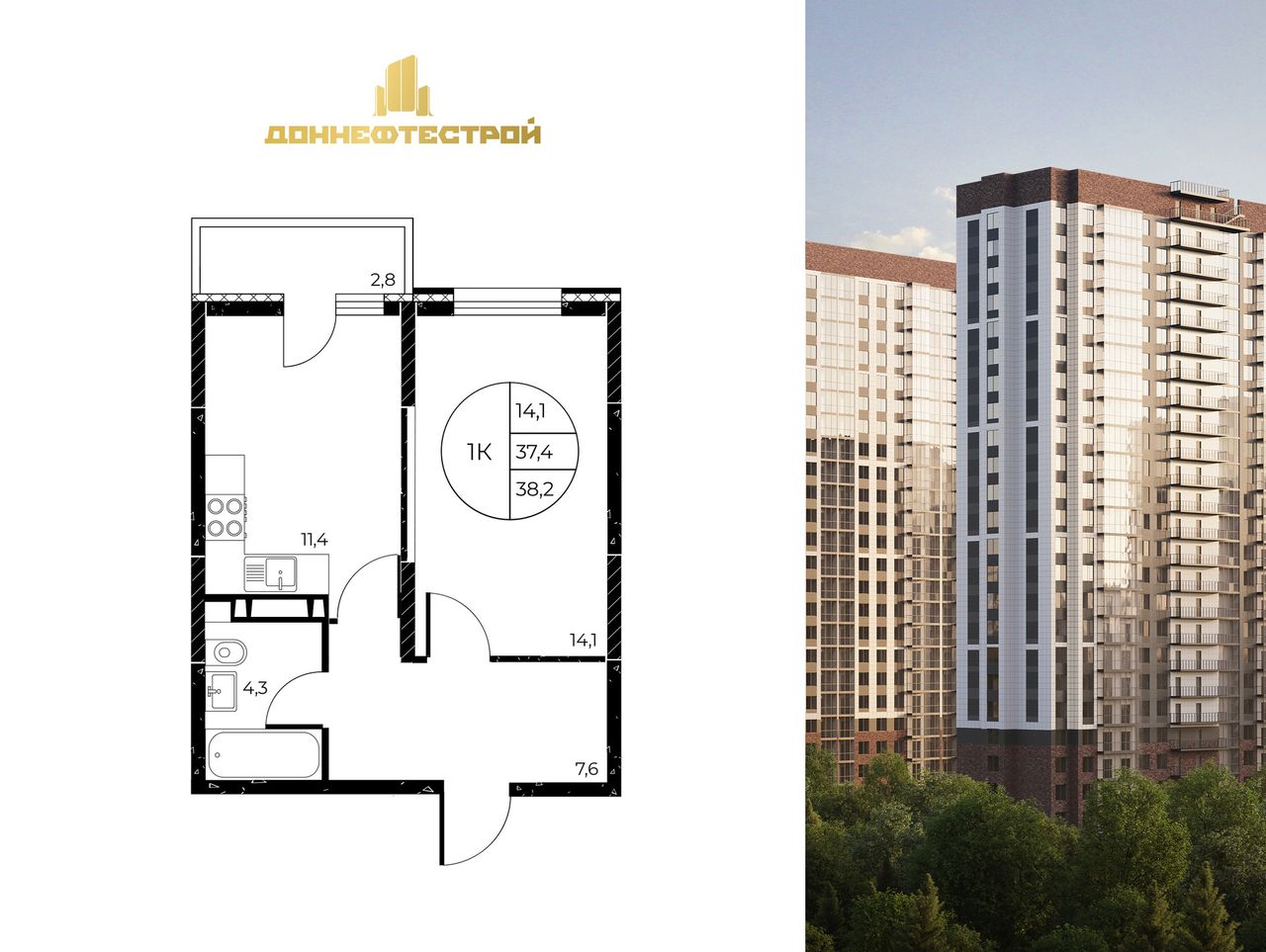 Общая площадь38,2 м²