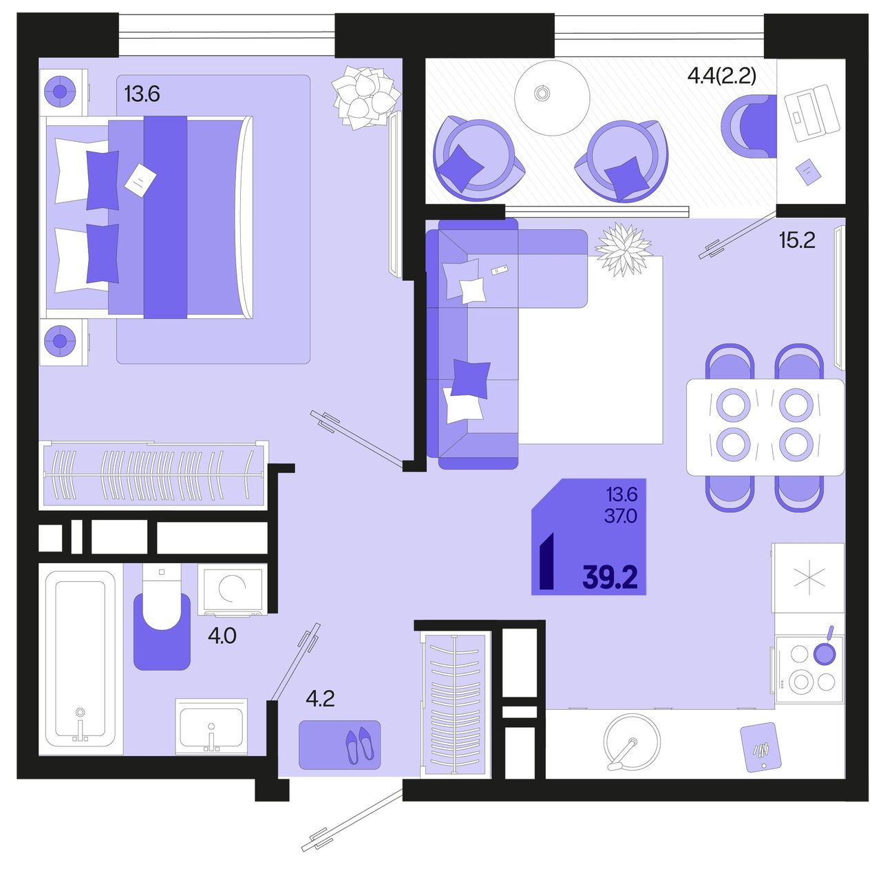 1-комнатная — 39,2 м² 17/18 эт. в Первое место