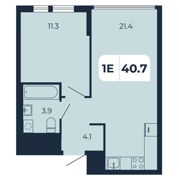 1-комнатная — 40,7 м²
