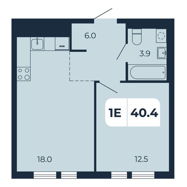 1-комнатная — 40,4 м²