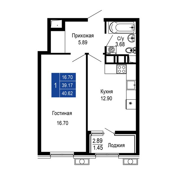 1-комнатная — 40,62 м²