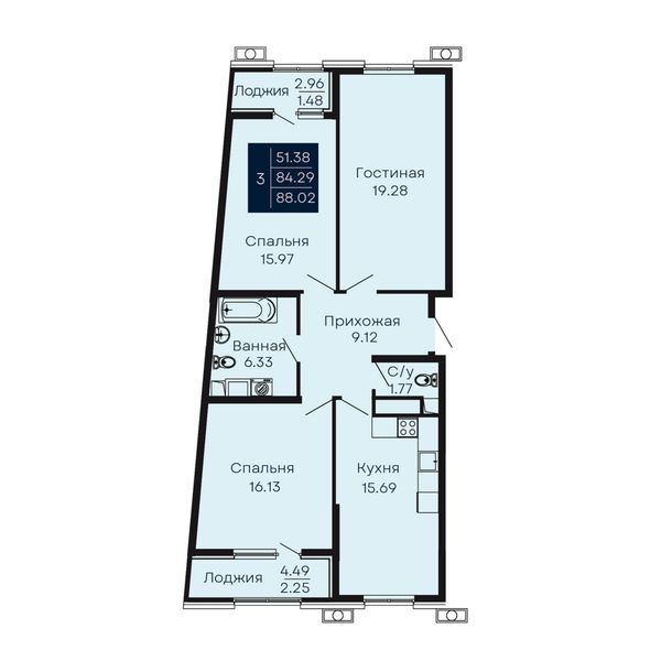 3-комнатная87,95 м²Республика Крым, Симферополь, улица 51-й Армии