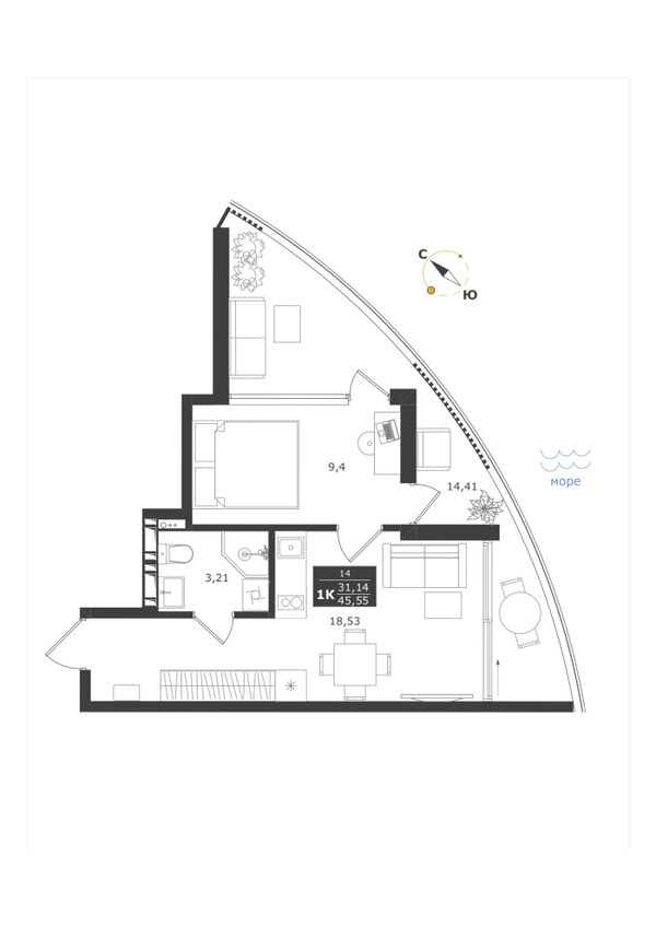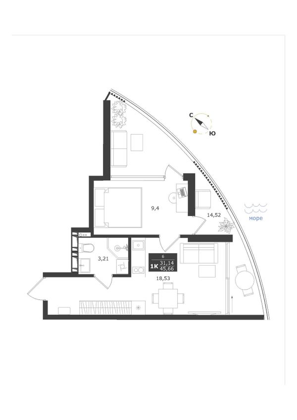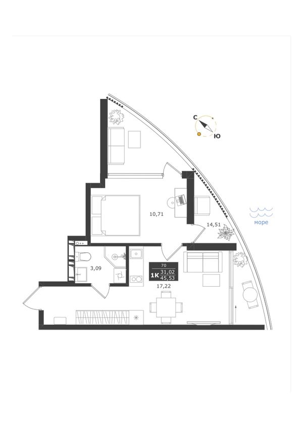 Купить однокомнатную квартиру в ЖК «Паруса мечты» в селе Виноградное в Республике Крым