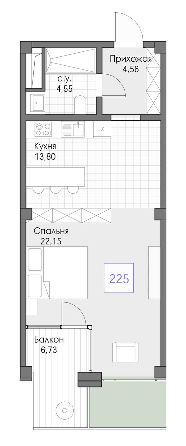 Купить однокомнатную квартиру в ЖК «Берий Палас» в Евпатории в Республике Крым
