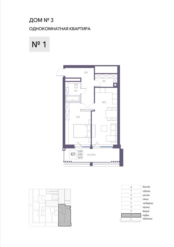 1-комнатная — 63,43 м²