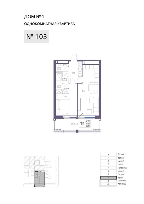 1-комнатная — 56,62 м²