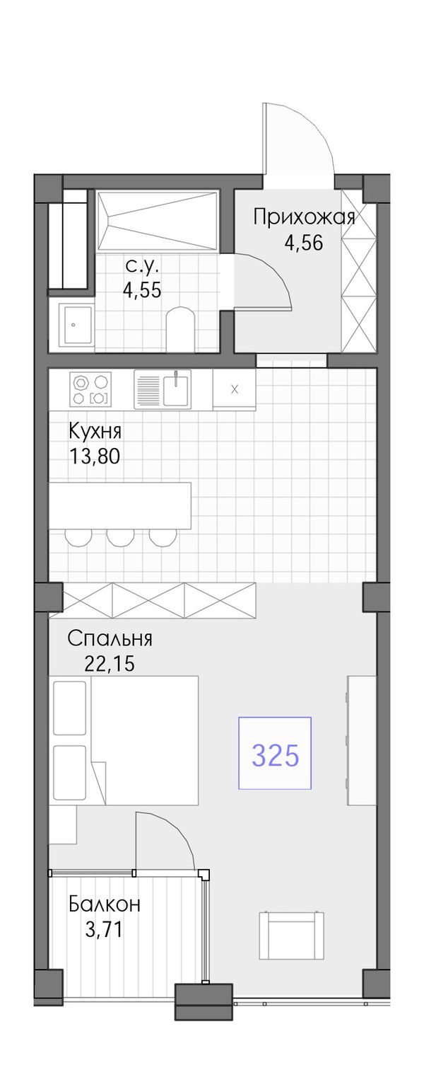 1-комнатная — 45,25 м²