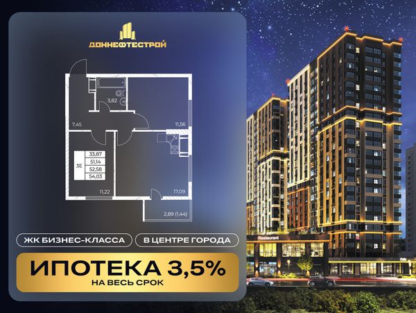 2-комнатная — 54,03 м²