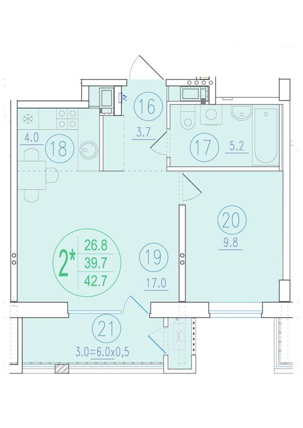 2-комнатная — 42,7 м²