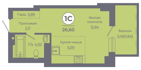 Студия — 27,55 м²