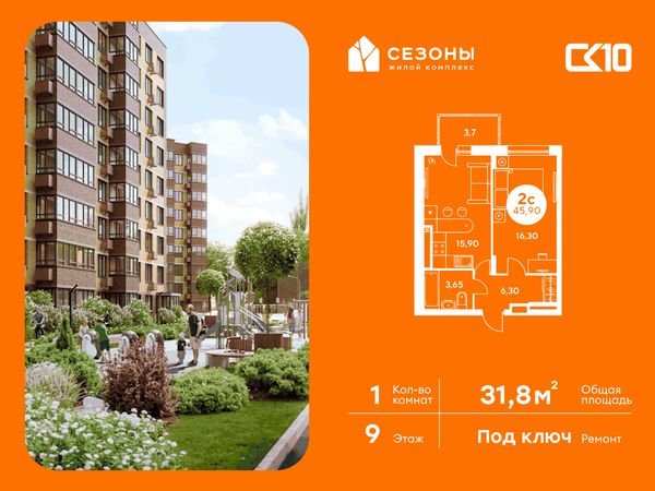 Студия — 31,65 м²