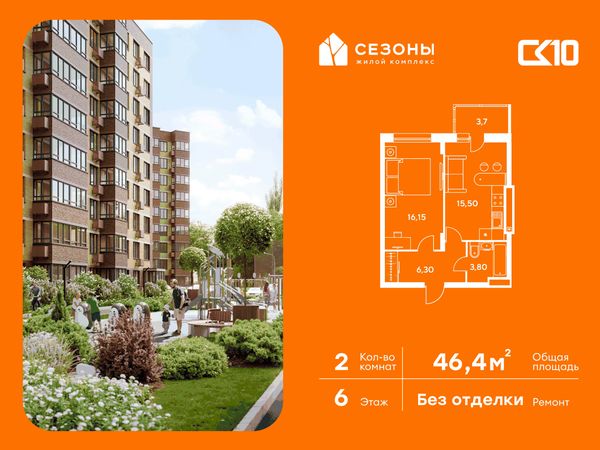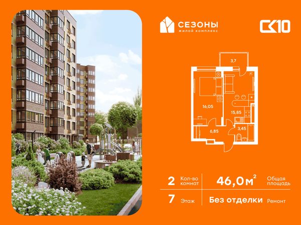1-комнатная — 46 м²
