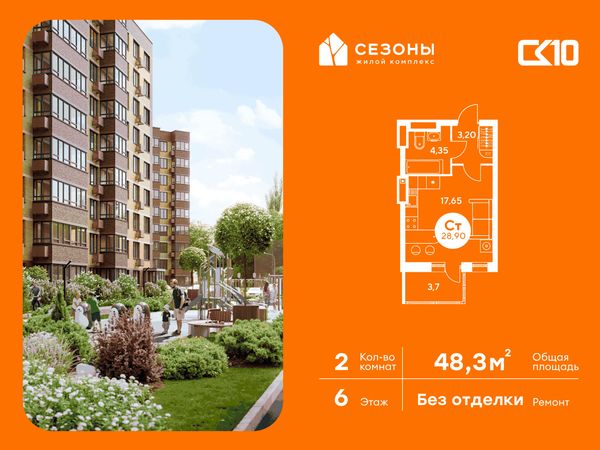 2-комнатная — 48,3 м²