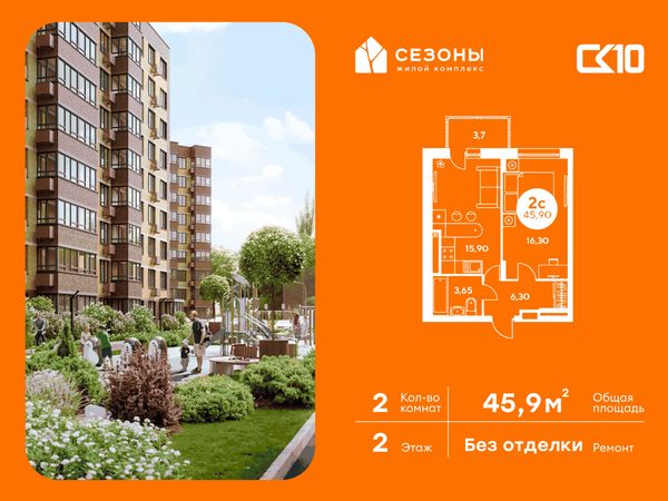 2-комнатная — 45,95 м²