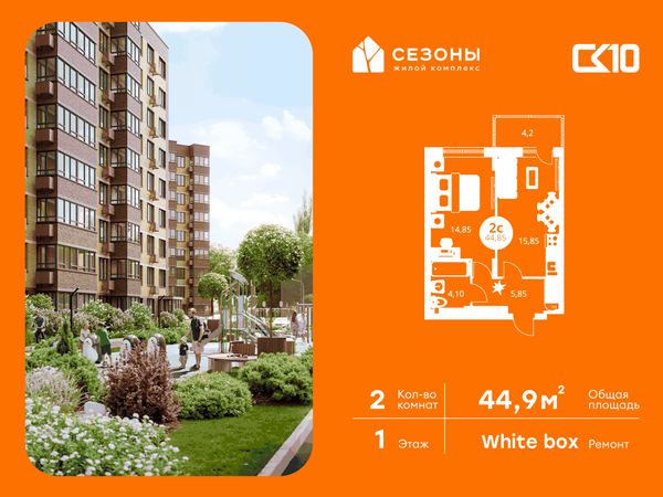 2-комнатная — 44,85 м²