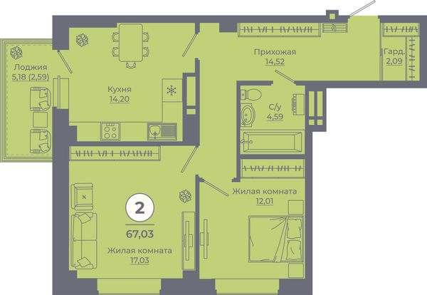 Купить двухкомнатную квартиру в Советском районе в Ростове‑на‑Дону