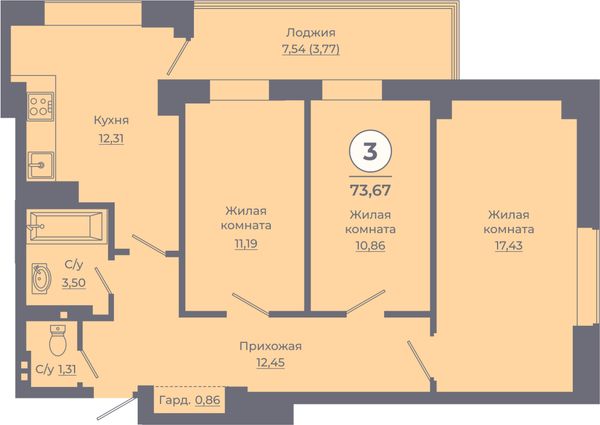 3-комнатная73,45 м²Ростовская область, Ростов-на-Дону, улица Жданова, 31