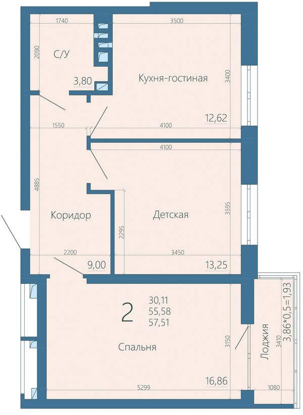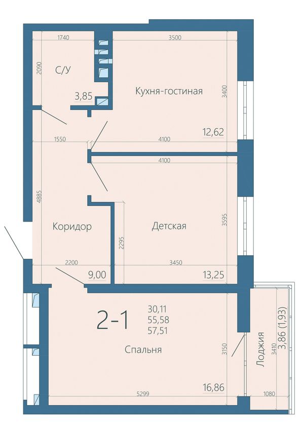 2-комнатная57,75 м²Ростовская область, Ростов-на-Дону, Пролетарский, Буйнакская улица, 7