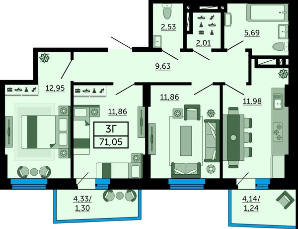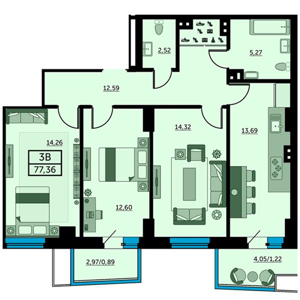 Купить трёхкомнатную квартиру в ЖК «Город у реки» в Ростове‑на‑Дону