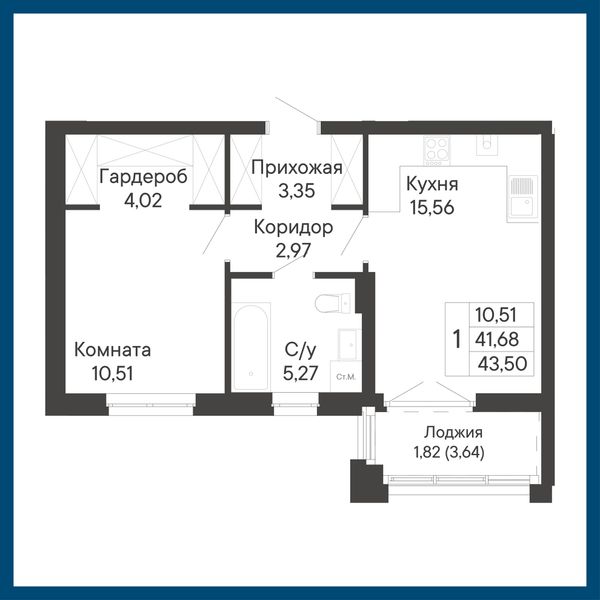 1-комнатная — 43,5 м²