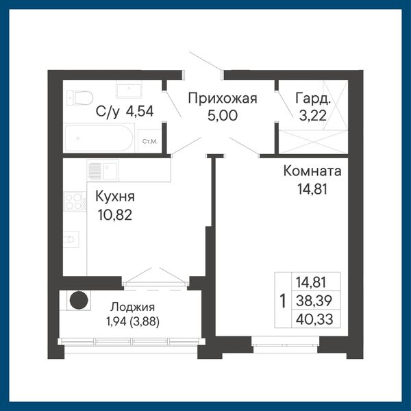 1-комнатная — 40,33 м²