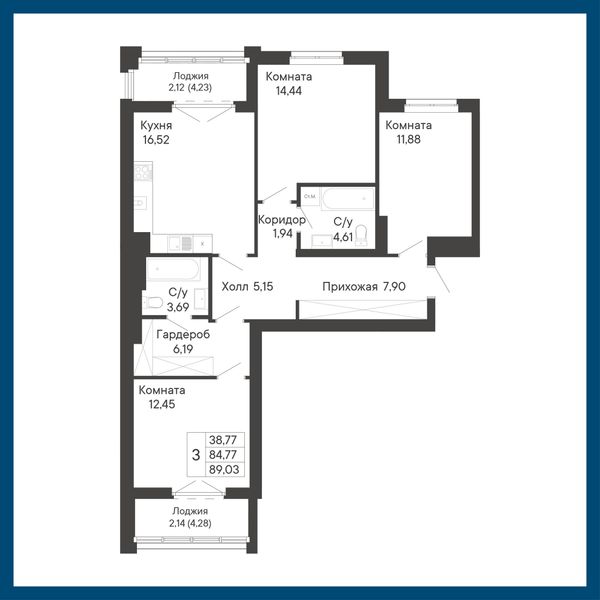 3-комнатная — 89,03 м²