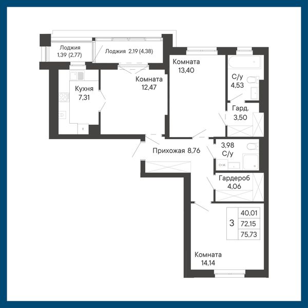 3-комнатная — 75,73 м²