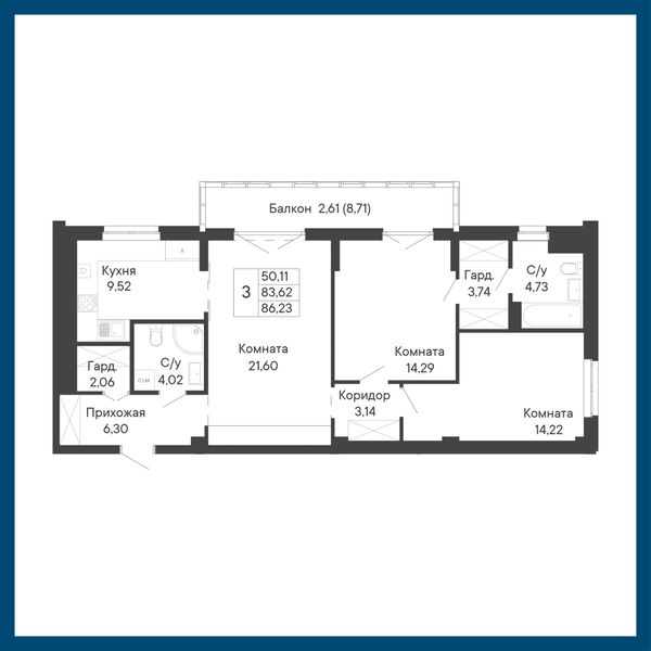 3-комнатная — 86,23 м²
