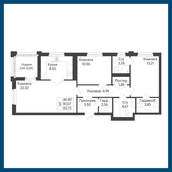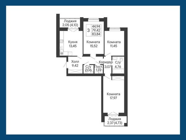 3-комнатная — 83,84 м²