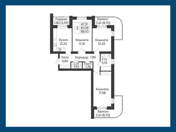 3-комнатная — 88,1 м²
