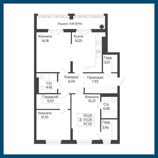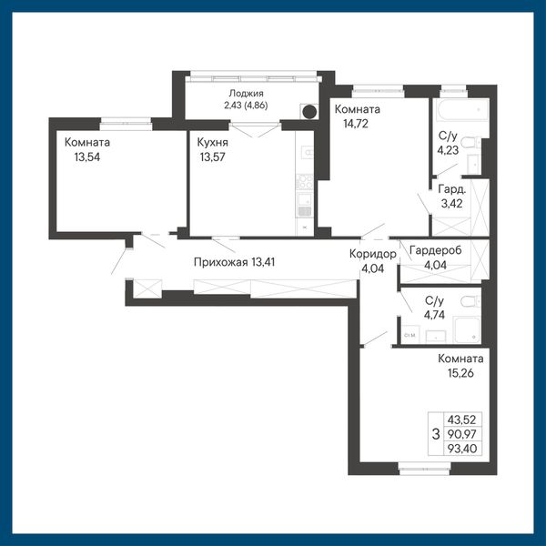 3-комнатная — 93,4 м²