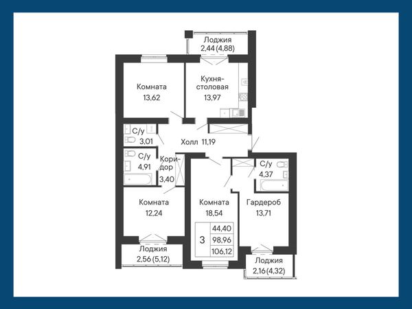 3-комнатная — 106,12 м²