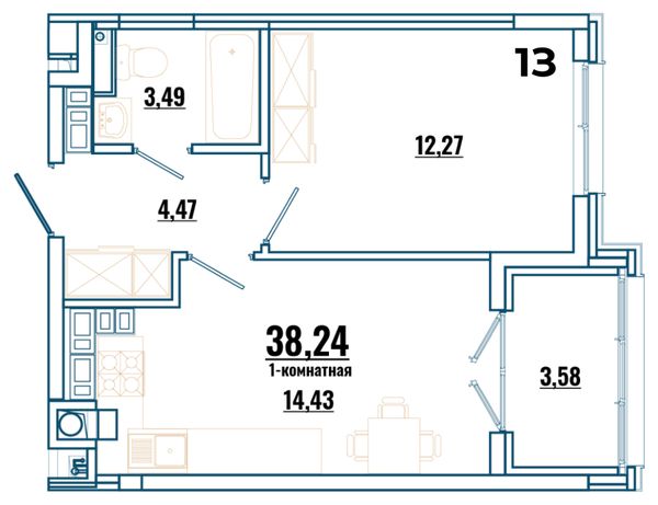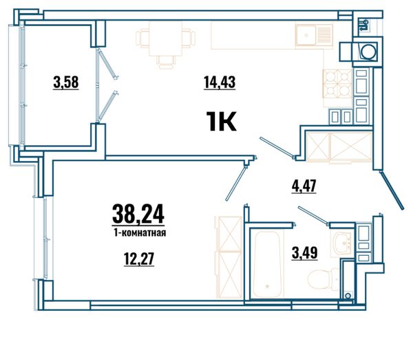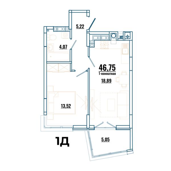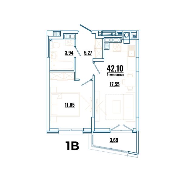 1-комнатная — 43,22 м²
