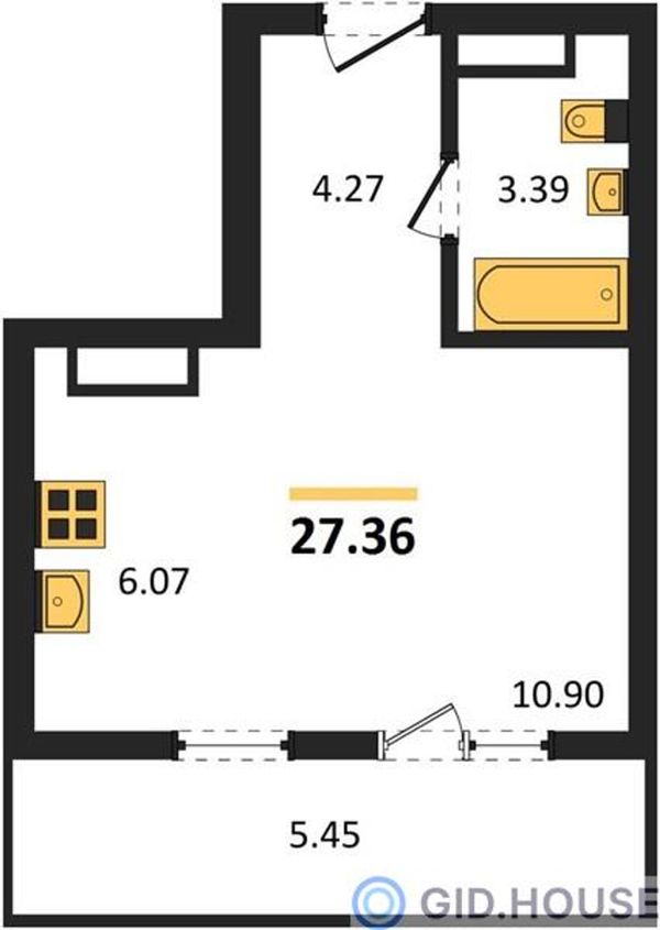 Студия — 27,36 м²