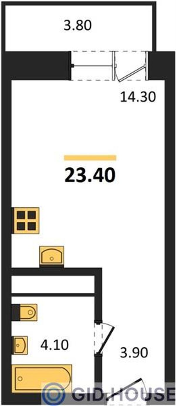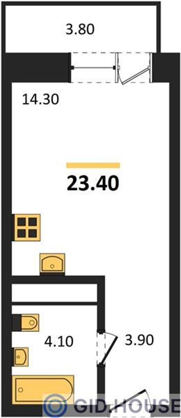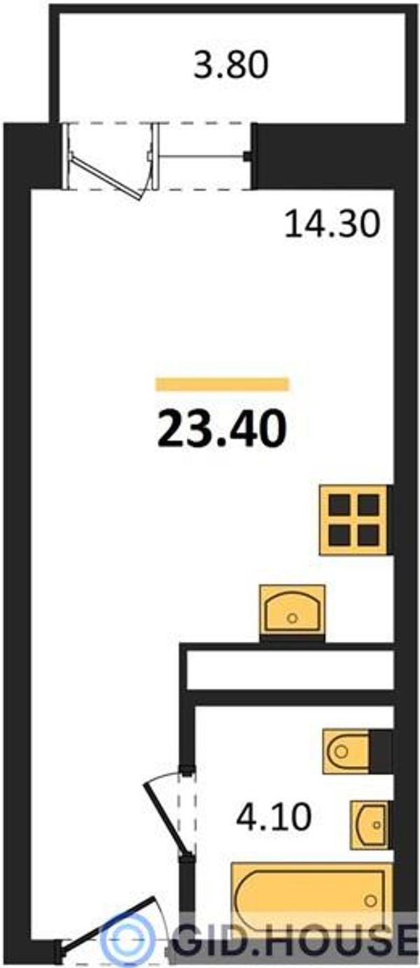 Студия — 23,4 м²