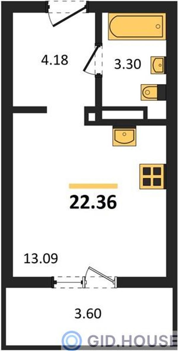 Студия — 22,36 м²