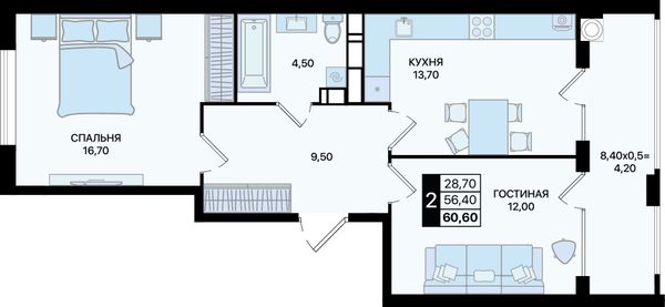 Купить двухкомнатную квартиру в ЖК «Движение61» в Ростове‑на‑Дону