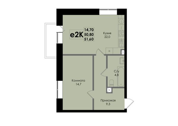 1-комнатная — 51,6 м²