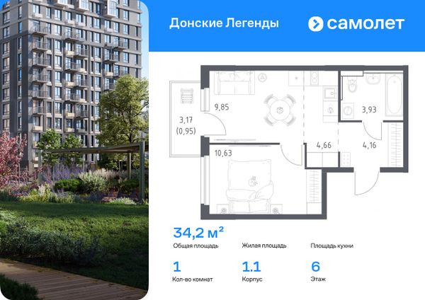 Купить однокомнатную квартиру в ЖК «Донские легенды» в Ростове‑на‑Дону