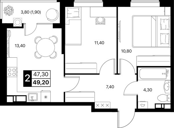 2-комнатная — 49,2 м²