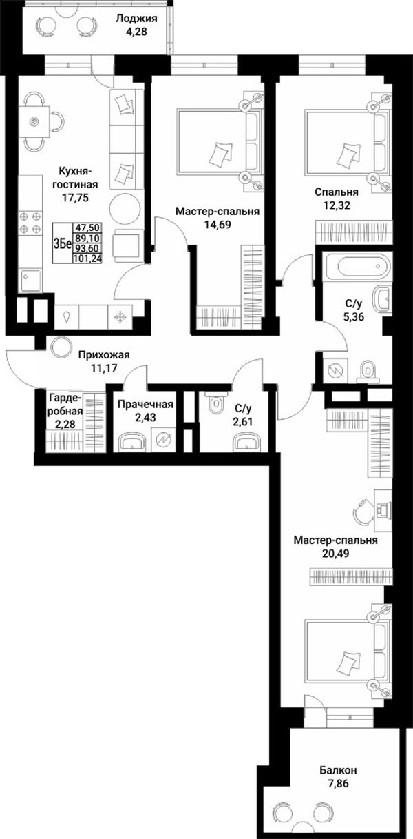 3-комнатная — 93,6 м²