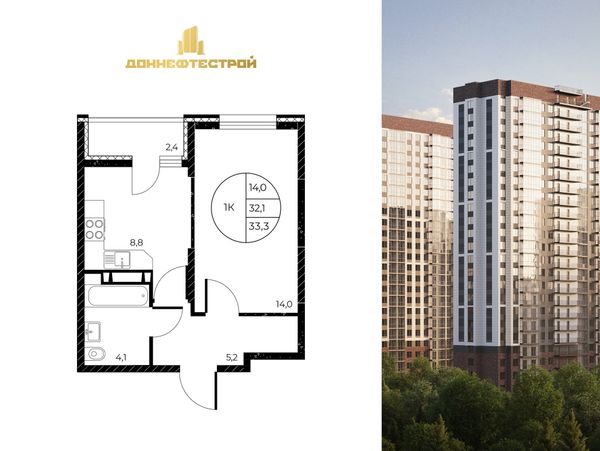 1-комнатная33,3 м²Ростовская область, Ростов-на-Дону, Пролетарский, Театральный проспект, 62
