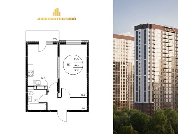 1-комнатная37,9 м²Ростовская область, Ростов-на-Дону, Пролетарский, Театральный проспект, 62