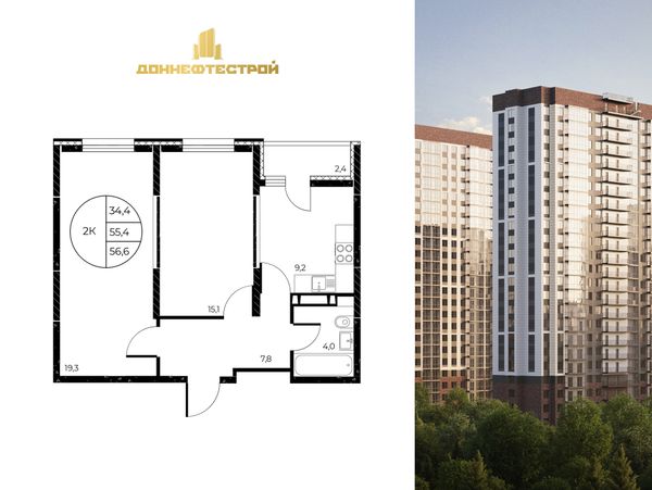 2-комнатная55,2 м²Ростовская область, Ростов-на-Дону, Пролетарский, Театральный проспект, 62