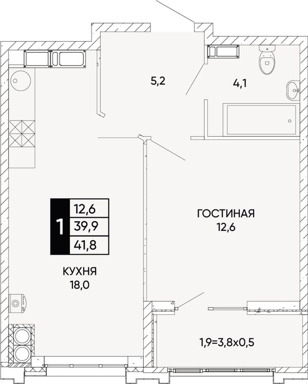 1-комнатная41,8 м²Ростовская область, Ростов-на-Дону, Левобережная улица