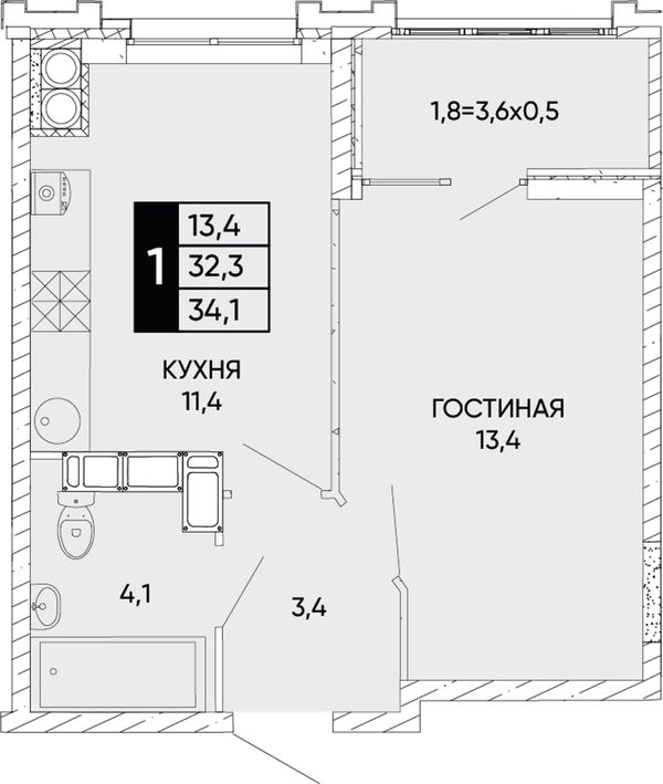 1-комнатная34,1 м²Ростовская область, Ростов-на-Дону, Левобережная улица