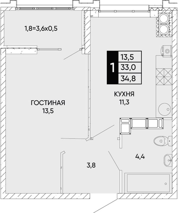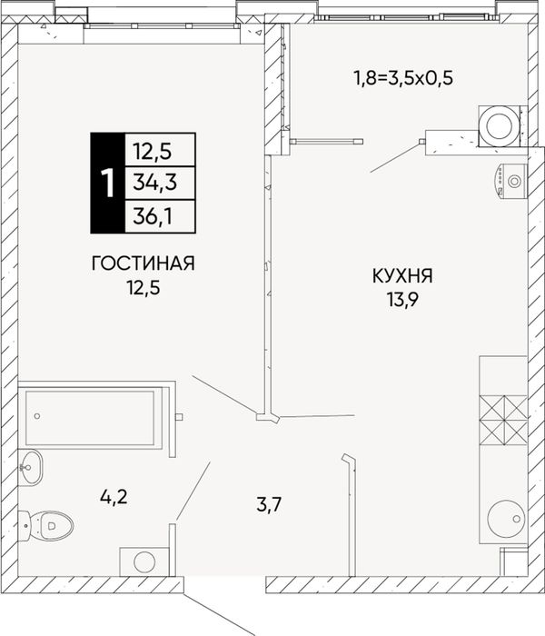 1-комнатная35,2 м²Ростовская область, Ростов-на-Дону, Левобережная улица